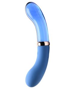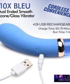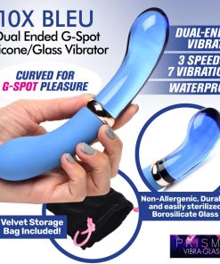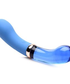 Plush, silicone vibrators are some of the sexiest on the market, but glass dildos are a favorite for penetration. Combine both glass and silicone with this Vibra-Glass Dual Ended G-Spot Vibrator! The silky smooth, premium silicone makes up one side of the vibe while the strong and smooth glass makes up the other end. To get to the G-spot, the dual ends are designed with an arched curve in the shaft and a round, bulbed end that massages and puts gentle pressure right on your sweet spot! Enjoy feeling the buzzing vibration through the core of both with 3 speeds and 7 patterns of vibration to enjoy! Notice the subtle differences between silicone and glass as the vibration comes through both ends in different ways. Made out of borosilicate glass, this end is non-porous, durable and super smooth. The plush silicone end is phthalate-free and body-safe when used with water-based lubricants. To recharge, plug in the USB cable included. Rated as IPX6 waterproof, you can expose this to strong water jets in a shower but it should not be submerged under water. Wash with warm water and mild soap after each use and then rinse and spray with a toy cleaner before wiping dry and storing in a cool, dark place.