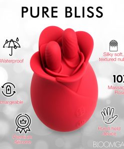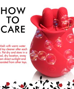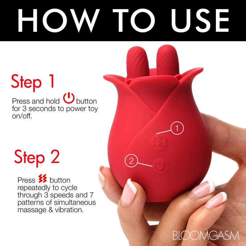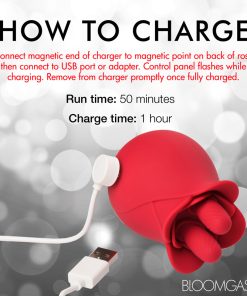 A new kind of blossom, this rose massages your most sensitive of places with two, textured nubs that rub it back and forth! The soft petals of this premium, phthalate-free silicone rose gently brush against your lips as you receive a sensual massage from these little fingers. Enjoy 3 speeds and 7 patterns of vibration and massage that rumbles from the palm of your hand directly into your erogenous zone below. Take it in the shower or bathtub, too! It is rated as IPX7 waterproof so it can be submerged underwater for up to 30 minutes! Recharge after use with the USB cable provided. After playing with this small, discreet, travel-friendly toy, immediately wash it with mild soap and warm water. Spray it with a toy cleaner and pat dry before storing in a cool, dark place.