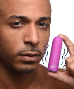 Ultra powerful vibes in a compact, meaty bullet! The powerful motor provides a deep thrumming vibe compared to the usually sharp fierce vibrations from other bullet vibes. Enjoy 10 unique vibration patterns and explore your sexuality with ease thanks to the simple power button control, or use this bullet while during lovemaking for more intense Os. Constructed with velvety smooth... Read more