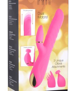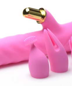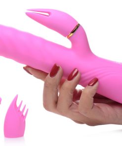The powerful dual motors power 3 intensities and 7 patterns of shaft and clitoral vibration! Flip through each function to buzz yourself with in tandem with 3 shaft thrusting speeds. The three included clitoral attachments are uniquely shaped to provide different sensations when buzzed on your clit – play and experiment with each attachment and fall in love with how they translate the powerful buzzing!