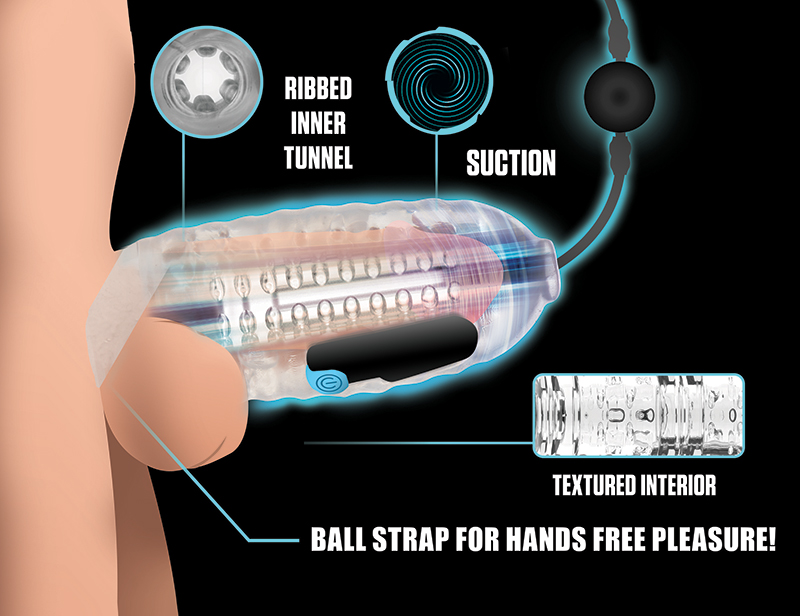 • Hands Free Sleeve: This stretchy, TPE sleeve has a ball strap that keeps it securely on your shaft for hands-free play!