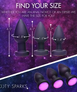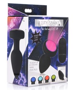Put on a sexy backdoor light show! This petite plug nestles between your cheeks and buzzes your booty with 7 modes of powerful vibration. Meanwhile, 5 different LED light colors will flash out of your anus in a psychedelic sequence, with 3 speeds of strobing to choose from. Use the remote control to conveniently cycle through settings for both functions, or hand the power over to your partner. The tapered tip and silky-smooth silicone allow for a comfortable insertion. This is a great plug for a kinky raver or anyone who wants to bend over in the dark and surprise their partner. Preserve the high-grade, phthalate-free material by avoiding use with silicone lubricants and cleaning with mild soap or toy cleaner.
