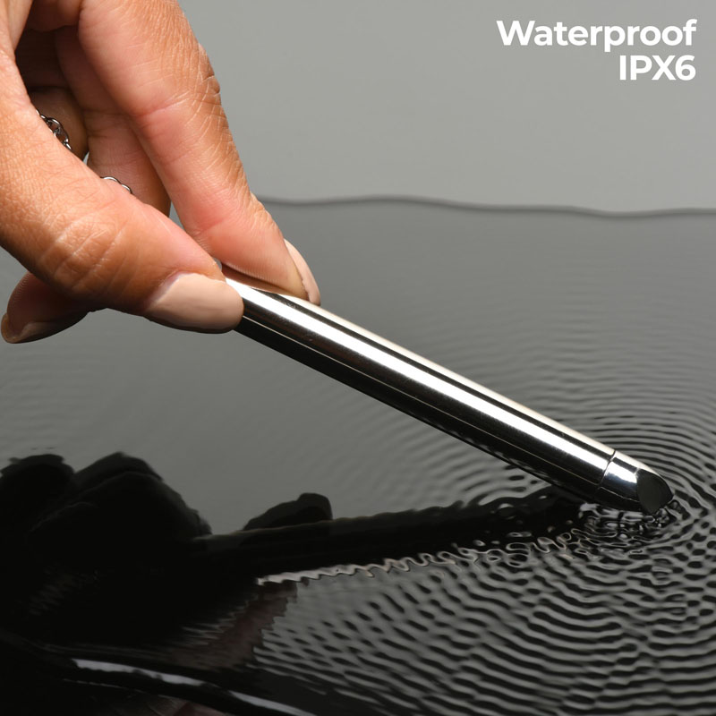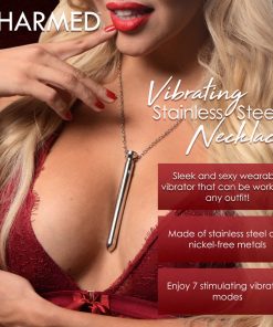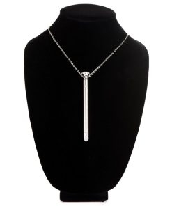 Enjoy wearing this gorgeous, stainless steel vibrator around the zinc alloy chain at your neck. The dazzling gem stones will catch your lover’s eye and match any chic or edgy aesthetic! When you’re feeling aroused, take the necklace off and simply press the button at the top to turn the vibrations on. Use the smooth, round tip to get exactly to the spot on your clit that feels divine, and enjoy living in ecstatic bliss with a beautiful toy that only those who are in the know… will really know about! Enjoy this toy in the shower, too! It is IPX6 waterproof rated.