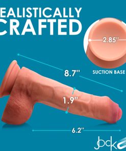 Truly bring the fantasy to life with an unbelievably realistic look and feel! With a soft pink blush to the head, a hood that partially hides it, this uncut rod also has light blue veins, smooth, big balls and curves ever so slightly to the right. Enjoy diving into roleplay and fantasy scenes with this hand-painted beauty that looks and feels real! This dual density dong has a firm inner core and a squishy, soft outer layer that adds to the realism as you ride it. Made out of soft and flexible premium quality silicone, it is phthalate-free and latex-free making it a body-safe option for your most intimate adventures! The wide base fits in most strapon harnesses and has a strong suction-cup base for hands-free riding, as well! Wash it after eerie use with warm water and mild soap, then rinse it and spray it with a toy cleaner. Keep out of direct sunlight and heat.