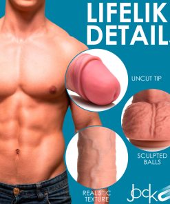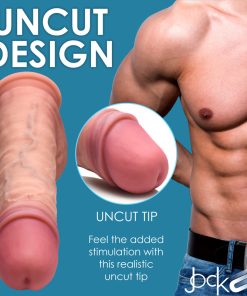 Truly bring the fantasy to life with an unbelievably realistic look and feel! With a soft pink blush to the head, the extra skin bunched around the corona, this uncut rod also has light blue veins, wrinkled balls and a lifelike feel that you'll thoroughly enjoy as this meaty, thick and strong dong penetrates you. Enjoy diving into roleplay and... Read more