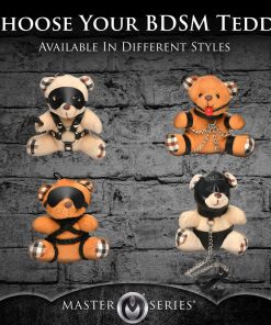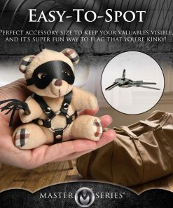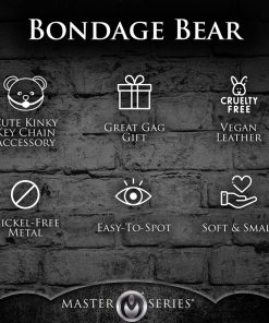 • Great Novelty Gift!: Get this Daddy Bondage Bear for yourself or as a gift for someone else! It fits in the palm of your hand and is a great way to flag your kinky side! This bear has a removable eye mask, a mini flogger, and a PU leather and metal bondage harness.