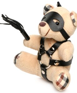 Who’s your Bondage Daddy? This Bondage Bear is perfect as a gift or for yourself and lets you flag your kinky side in the cutest of ways! This bear has light peach fur, wears a faux leather harness with metal O-rings, wields a mini flogger, and has a removable eye mask! Wear it on your bag, attach it to your keychain, or hang it somewhere for fun! It fits in the palm of your hand. Bring it to your desk at work and let Bondage Bear Daddy keep you in check so you get all your work done! Attach it to your keychain or clip it to a bag! Made out of polyester, PU faux leather, plastic and nickel-free metal.