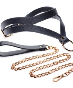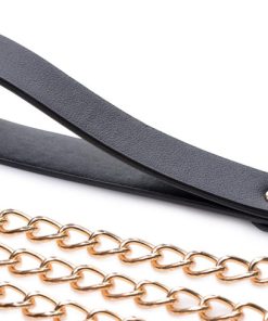 Leash up your sub in style with the included gold chain leash! The black PU leather hand loop matches the dazzling gold metal hardware to provide you a bondage accessory that lets you strut your sub in style around your home or your scene.