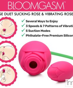 Let your pleasure bloom with this Sucking and Vibrating couple of Roses! Built for intense blended orgasms – the smaller rose is designed to be inserted for deeply satisfying vibes, while the larger rose pulses and sucks on your clit. The unique corded design lets you manipulate both roses to target your sweet spots with ease!