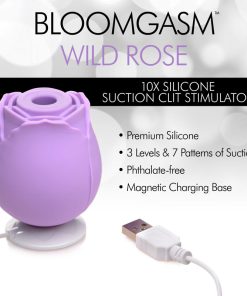 Prepare to blossom with pleasure with this rose-shaped Bloomgasm Silicone Suction Clit Stimulator! This Wild Rose clit sucker fits neatly in your hands so you can play and explore in comfort – perfect for use on your own or with your partner. Combine this sucking rose with a penetration toy or use during intercourse and elevate your pleasure!