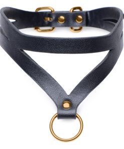 The Bondage Baddie is fully adjustable with a convenient rolling buckle so you can find the perfect fit. The O-ring is compatible with most leashes so you can lead around your sub in style!