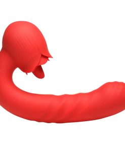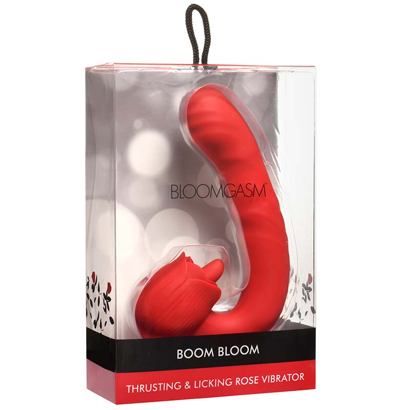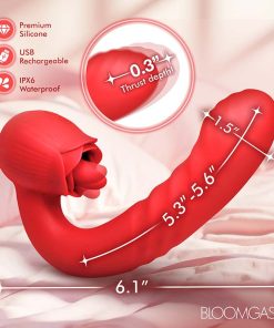 Indulge in ecstasy with the Boom Bloom Thrusting and Licking Rose Vibrator. This exquisite device offers a licking rose with a tantalizing up-and-down motion, featuring 3 speeds and 4 unique licking patterns to thrill you. The shaft is textured with stimulating ribs and a rounded G-spot head for enhanced pleasure. Revel in the ultimate sensory experience with 3 speeds and 7 modes of thrusting and vibration. Its flexible neck allows you to find the perfect position for all your needs. Crafted from high-quality, body-safe silicone, and easily rechargeable for uninterrupted use.