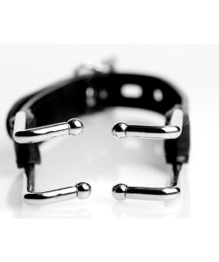 Pry that slutty mouth open with this intimidating spreader! Place the rounded tips in either side of their mouth and then adjust the strap until their lips are pulled taut. Their unique vulnerability and humiliation will fuel your arousal. A locking buckle allows you to trap them in the vice, leaving their mouth open for whatever invasion your devious mind can think up! Treat yourself a sweet desperation from your lover.