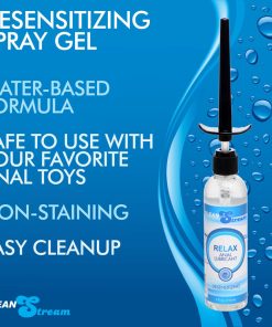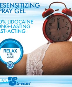 CleanStream Relax Desensitizing Anal Lubricant contains 2 percent lidocaine to ease some of the discomfort associated with anal play, while still allowing you to enjoy the sensations. This formula is compatible with all materials, including latex and silicone, will not stain your sheets or clothing, and is made in the USA.