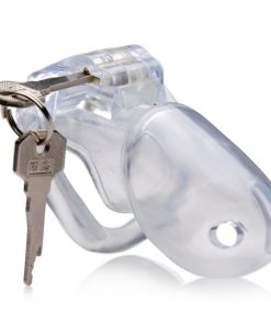 Confine your sub in this clear chastity prison! The Clear Captor locks your partners sexuality in clear view, preventing them from pleasuring themselves until you set them free. Made with forgiving materials for long term comfort, as well as a generous amount of ventilation holes and a pee through tip.