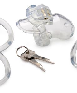 Confine your sub in this clear chastity prison! The Clear Captor locks your partners sexuality in clear view, preventing them from pleasuring themselves until you set them free. Made with forgiving materials for long term comfort, as well as a generous amount of ventilation holes and a pee through tip.