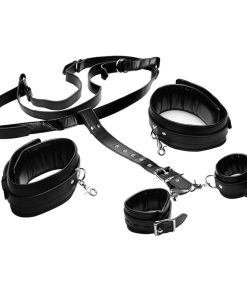 Get your play thing into the perfect position for penetration! Spread those legs open and restrain those wrists! This highly adjustable bondage sling will create a darkly seductive atmosphere for you and your lover to enjoy. Adjust the back strap to bring their wrists up or down their back. Bring their knees up to their chest with the thigh strap to leave them completely vulnerable and exposed. The padded cuffs will keep them comfortable through the long hours of your pleasing, teasing, and tormenting! Each of the buckles locks, if you wish, to further incarcerate your submissive lover. Take control of the evening when you strap your lover into this durable and sexy sling!