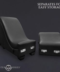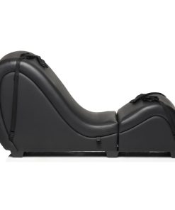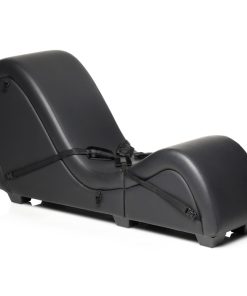 Want your very own sex dungeon at home but don’t have the floor room to spare? This kinky sex chaise longue breaks down into two pieces so you can store it when not in use! Tuck it away in a room, closet, or storage. Break it down to easily transport it from one place to the next! Never stress about fitting that couch through the tight hallway, stairwell or door again! Just unhook the metal brackets and take it a piece at a time! Built out of durable wood and metal, it’s covered with Vegan leather. This faux leather is easy to clean and is smooth and seamless. The couch is comfortable and ergonomically built so you can explore more positions than ever before! Included with the couch are two Love Pillows that act as support aids for your head or chest at the top and allow comfortable sitting or kneeling when placed in the curve of the couch. Restrain your lover to the couch with the soft fleece wrist and ankle cuffs! They each connect via nylon straps to the base of the couch and are easy to adjust and remove. Assembly is easy; simply follow the directions included with the couch. Wash off the couch after a sexy scene with warm water and mild soap. Use a soft cloth to wipe it clean.