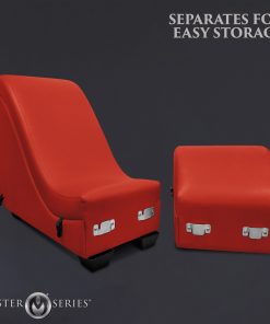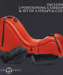 Want your very own sex dungeon at home but don’t have the floor room to spare? This kinky sex chaise longue breaks down into two pieces so you can store it when not in use! Tuck it away in a room, closet, or storage. Break it down to easily transport it from one place to the next! Never stress about fitting that couch through the tight hallway, stairwell or door again! Just unhook the metal brackets and take it a piece at a time! Built out of durable wood and metal, it’s covered with Vegan leather. This faux leather is easy to clean and is smooth and seamless. The couch is comfortable and ergonomically built so you can explore more positions than ever before! Included with the couch are two Love Pillows that act as support aids for your head or chest at the top and allow comfortable sitting or kneeling when placed in the curve of the couch. Restrain your lover to the couch with the soft fleece wrist and ankle cuffs! They each connect via nylon straps to the base of the couch and are easy to adjust and remove. Assembly is easy; simply follow the directions included with the couch. Wash off the couch after a sexy scene with warm water and mild soap. Use a soft cloth to wipe it clean.