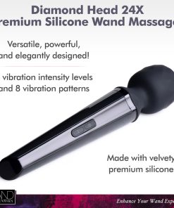 Relax into an elevated massage experience with the perfect vibrating wand. As implied by its name, this wand features a faceted diamond texture on the bulb that provides a more intense massage. The low vibration handle allows you to feel the 8 settings at 3 different strength levels in your desired location, rather than absorbing it in your hand. With a total of 24 modes, you can find relief that is just right for you.
