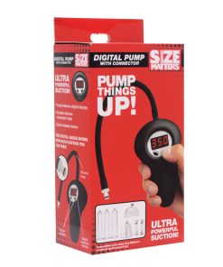 Pump things up with a digital pumping system! Compatible with many Size Matters cylinders for the penis, vulva, nipples, and more, this device features an electric pump and a sturdy silicone connector hose. The digital pressure gauge displays how much suction your body is enduring as you become more and more swollen and sensitive. Two simple button controls make your pumping endeavors easy so that you can immerse yourself in the moment. Just press the Start/Stop button to begin and end the powerful pressure that builds within your cylinder. Ready to play with your engorged parts? The Air Release button quickly frees you for the next chapter of play.