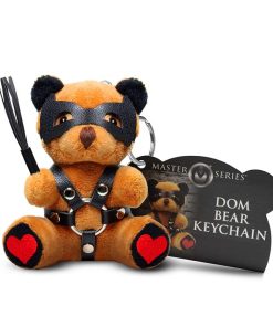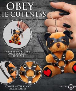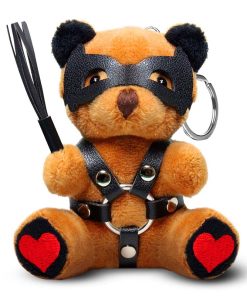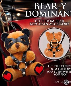 Discover the Dom Bear Keychain, a blend of cute and edgy! This tiny bear features hearts on its feet and a look that’s both menacing and loving. Attach it easily to bags, keys, or anything you want to add a touch of fun. Perfect as a gag gift or a sincere present for friends and partners who enjoy a bit of kink. The bear sports a vegan leather mask, harness, and even holds a tiny flogger in its paw. Make a statement wherever you go with this adorable and unique accessory!