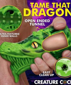 Unleash your wildest fantasies with the Dragon Tamer Silicone Stroker. Dive into a realm of pleasure with its dragon head design, featuring fierce teeth, an intimidating face, and a tantalizingly long tongue that invites you to explore. Crafted from premium silicone, this stroker ensures a body-safe experience for all your intimate adventures. Its stretchy, grooved interior, lined with stimulating nubs, promises to massage and invigorate your shaft with every stroke. The open-ended design makes cleaning a hassle-free task, allowing you to focus solely on the thrill of the moment.