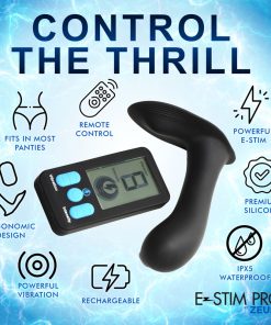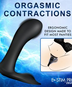 Your best Big O’s come from powerful, contracting muscles! Use electro-stimulation to get the results you want in the bedroom! With e-stim targeting your G-spot and contraction muscles, you get a toy that stimulates the same muscles that cause orgasm! Enjoy pleasure like you’ve never known before! Choose between 3 levels and 2 patterns of powerful electro-stimulation. Add in another layer of pleasure with 3 speeds and 2 patterns of vibration! All of this can be felt when inserting the round tipped vaginal toy that is specifically shaped to put pressure on your G-spot! With a firm shaft and flexible bottom, it’s comfortable to wear for long periods of self-pleasure. Use the battery-operated remote to switch between settings and use the e-stim and vibration separately or simultaneously. The firm, silky smooth, premium silicone is phthalate-free and body-safe. Do not submerge under water, but enjoy the splashproof feature of the silicone. Use only water-based lubricants or use a conductive, E-stim gel. To wash, use warm water and mild soap then spray with a toy cleaner and wipe dry. Store in a cool, dark place out of direct sunlight. Recharge the toy using the USB cable provided. Replace batteries to the remote as needed.