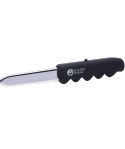 This prod-style electro shock device is a devious way to keep your sub in line! The Electro Shank is designed for electro play enthusiasts and curious sadists and masochists alike. Take hold of the comfortable handle while your play thing prepares for a zap! This device delivers an intense shock that is sure to correct your lovers naughty behavior. The sleek, sensual blade is perfect for teasing your sub before delivering the shock! An easy-to-use button allows you to control the length and frequency of the shocks, while the handle and blade are safe to the touch.