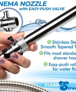 Enjoy satisfying douching with this enema nozzle and push valve! Made of stainless steel, it is non-porous, rust-free and compatible with all lubricants. At the tip are five spray holes that diffuse the water for a gentler spray. At the base is a push valve that allows you to have more control over the water pressure as it comes out. This nozzle is compatible with most hoses and with LE776 types in particular. The smooth, tapered tip makes insertion easy. Enjoy using the sturdy, durable and long-lasting nozzle as you get a fulfilling enema! The enema doesn’t need to be cleaned often, but when you want to thoroughly clean it, boil the attachment in hot water.