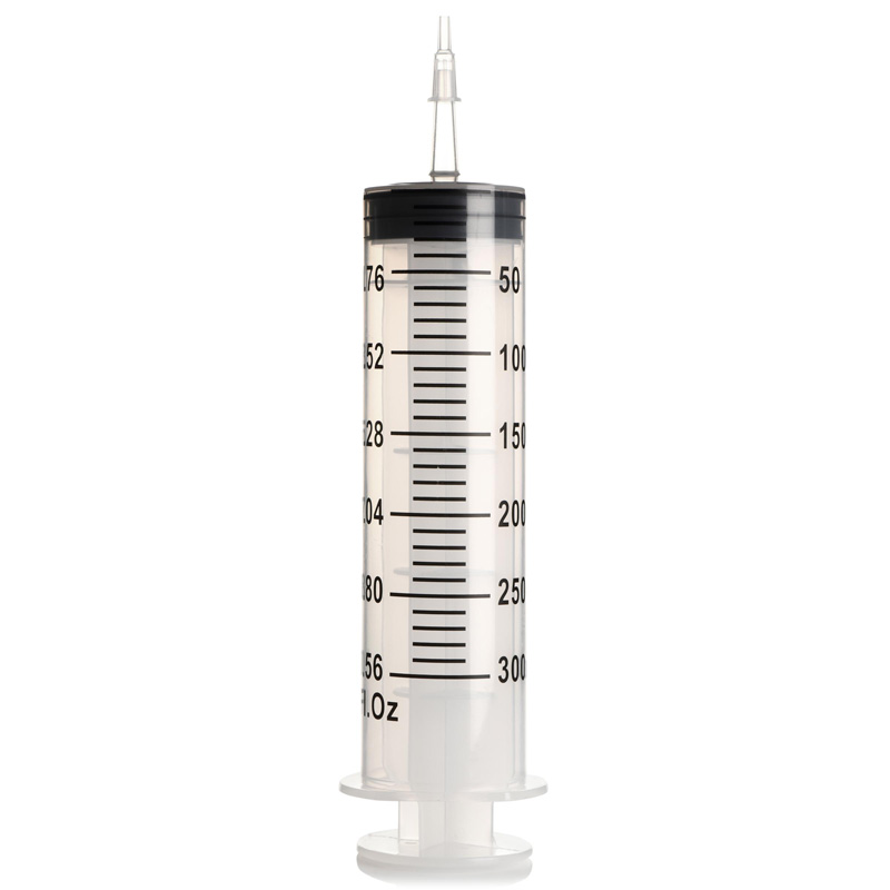 Measurements: Syringe: 10 inches length, 2.1 inches width, holds up to 300ml of liquid.