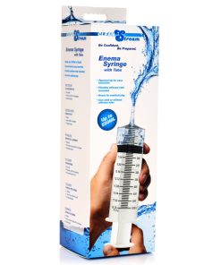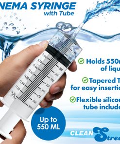 Feel confident and prepared for a hot night exploring your booty! This enema syringe holds up to 550ml of liquid so you can fully clean out your backdoor and feel fresh before you play! The polypropylene syringe can easily be filled with any liquid of your choosing and has clear markings so you know exactly what amount of liquid you’re taking in. With a tapered tip, insertion is easy. You can also use the silicone tube to help suck up any liquid from another source and keep cross-contaminants at a minimum. Perfect for medical play scenes, you or your partner can play doctor and enjoy this sexy way of conducting an at-home examination! Clean the tube and syringe after use by washing with warm water and mild soap.