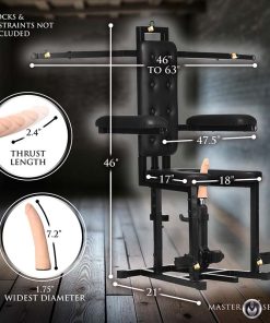 Note: Use water-based lubricant only on the silicone dildo. Keep dildo and chair out of direct sunlight and away from heat to preserve quality.