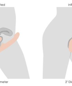 Measurements: Overall length 9.4 inches, dildo insertable length 5.6 inches, dildo width 1.5 inches. Vaginal bulb insertable length 4.5 inches, vaginal bulb width 1.5 inches, vaginal bulb width inflated 2 inches.