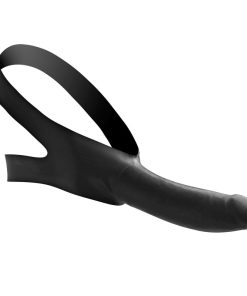 Get up close and personal with the Face Fuk from the Master Series. This stretchy, all-latex strap on is designed to fit over the mouth or chin. You or your plaything can use it as a gag, or wear it on the chin which leaves the tongue free to roam as the dildo penetrates. The rigid black dildo is nice and stiff, with just enough give to the lifelike shaft. Comfortable and sturdy, the stretchy rubber straps run behind the head and beck, keeping it in place and stretching to fit most any size and shape.