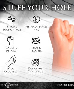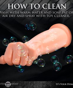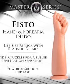 Take your best shot at going elbow deep on this extreme dildo! This smooth, lifelike fist and forearm allows you to master the next level of large insertions. Get all the length and girth your hole craves! You can fist yourself or get fisted by a partner with this clenched hand and the long arm that supports it. The realistic details will stretch you open and massage your hole. Perfect for vaginal or anal use, just lube up and get ready for intense penetrating pleasure. The flared base allows you to impale yourself entirely and ensures easy retrieval. The powerful suction cup can be mounted so that you can ride these knuckles… hands-free! Made of a phthalate-free material, it is body-safe and compatible with silicone and water-based lubricants. Clean with a mild soap or toy cleaner after use.