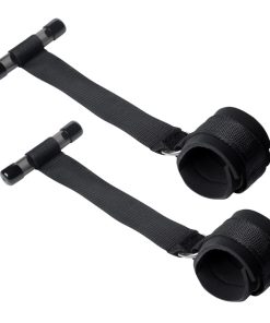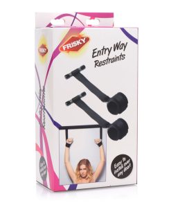 Made of durable neoprene material with sturdy plastic barrels to hang behind the door, these over the door Entryway Restraints will keep them pleasantly compliant. The cuffs fasten securely with Velcro enclosures and feature removable clasps so you can play with or without the door restraints. The end barrels can be placed at the top of a door or the bottom, or anywhere that can secure them. The possibilities are endless!