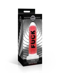 You’ve been craving a big, naughty rod all day. As your partner straps it into place, in bold, black letters against red is the word FUCK. You rub the lube on the shaft and lick your lips in excitement. You know what comes next, and you spread your legs in anticipation! But even though you crave it, you still moan out loud in surprise as you get stretched open by this big, bad, dildo!