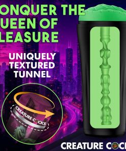 • Unleash your wildest fantasies with the Fuckzilla Stroker! This monstrous green lizard’s hungry, scaly hole offers a one-of-a-kind pleasure experience. Its stretchy, high-quality, body-safe rubber tunnel is filled with intricately designed grooves, ribbed valleys, and captivating textures for an incredible journey. A hard plastic case keeps the stroker safe when not in use and gives you a secure hold during your sessions. Easy clean-up is guaranteed with the open-ended design; just let warm water and mild soap flow through. For a personalized experience, adjust the suction intensity with the provided silicone plug. This stroker promises unparalleled adventures.