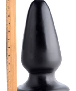 If you are trying to achieve a stuffed-to-the-max sensation and a wide, gaping sphincter… look no further! This extra-extra-extra-extra-large butt plug will give you the anal challenge of a lifetime, an experience that you will never forget. The tapered tip gives you a little help, so long as your booty is already used to large insertions. The huge butt plug will gradually stretch you open more and more as you impale yourself further and further. Think you can handle it? This material is phthalate-free and compatible with both silicone and water-based lubricants. Clean after use with warm water and mild soap or toy cleaner.
