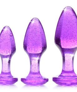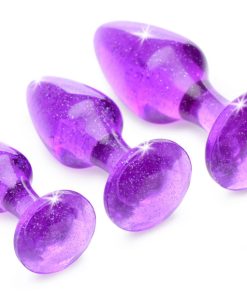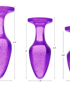 This set of smooth, solid, butt plugs feature a shiny glittery purple pattern to decorate your booty while you play! These Glitter Gem plugs are tapered and slim, and graduate in size from small to large for easy training – perfect for beginners and experts alike!