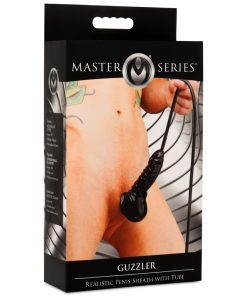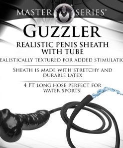 Enjoy both latex and water-sports with this Realistic Penis Sheath and Tube! Stretch the latex sheath over your shaft and balls to keep it securely in place and keep all those drips and spills running down the hose instead of your thighs. The texture of the sheath is designed to be realistic so you and your partner can enjoy the look and feel of your black latex rod! At the end of the sheath is a 4 foot long silicone hose. Enjoy emptying out your bladder and letting the hot liquid run down the hose into or onto whatever you please. Play alone or with a partner; you have lots of room to stretch out the fun!