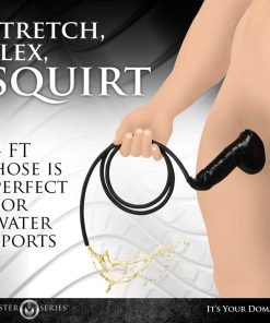 Use some lube on your shaft and the latex then stretch it over your rod and get it in place. Once on, check that the hose is secure, and then enjoy! Lay down towels, set out cups or jars for catching fluids from the hose, get a waterproof sheet or use the shower or bathtub to get wet and wild! Use the hose to pour the liquid over yourself or aim it over your favorite water-sports loving partner! To clean after use, rinse with warm water and mild soap, then use a toy cleaner and pat dry.