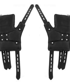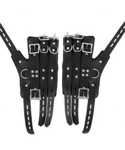 This all in one suspension kit features two top of the line, comfortable, durable, and secure leather cuffs, with an ultra heavy duty black bondage bar so you can string them up and leave them completely at your mercy. You can attach the cuffs to the bar with rope, carabiners, snap hooks, or however you wish. Hang the bar from the ceiling or a supportive frame, it is designed to take weight without bending or warping. This top of the line bondage kit contains the essentials to get started with suspension play.