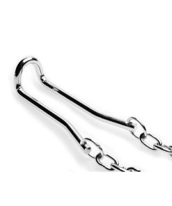Test your limits with a unique ball stretcher and two 8 ounce weights! Start with a manageable tug by slipping the U portion of the stretcher onto your scrotum above your balls. Savor the pull of the heavy-duty stainless steel as gravity takes it toll! Two connector chains dangle with convenient hooks for adding each of the weighted balls… or maybe even more! How much can you handle? Play on your own or with your Master or Mistress! The durable material is non-porous, making it easy to sanitize after each use.