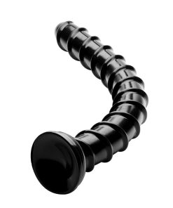 Long and thick, with texture that will wind you up! This firm, but flexible dildo has a swirled ridge that runs up its length to give you even more sensation as you feed it into your hole. How much of this girthy length can you fit inside you? The powerful suction base anchors to most flat surfaces so that you have the ultimate control, even during solo play. Amp up your size play and take deep probing to a whole new level! This material is phthalate-free and compatible with both silicone and water-based lubricants. Clean thoroughly after use with mild soap and warm water.