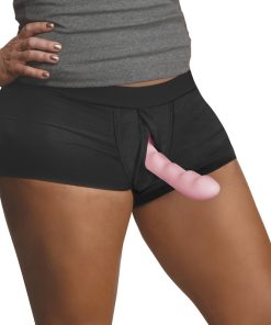 Wear your boxers under your garment and always feel confident, comfortable, and ready for a good time! With a hidden O-ring sewn into the cotton and spandex blend shorts, the front of your boxers look just like any other! When you’re ready, slip the strapon dildo of your choice into place! Until then, enjoy the comfortable and breathable fabric as you wear it beneath your clothes! The wide, supportive elastic band helps support the weight of your strapon dildo and keeps the boxers from sagging. As an added bonus, care for your new harness is easy! Simply machine wash your boxers after each use on a cold cycle. To preserve the life and elasticity of the fabric, hand-wash and air-dry to avoid exposure to heat.
