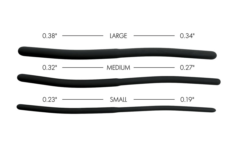 Made of premium, phthalate-free and non-porous silicone, these urethral sounds are easy to sterilize and body safe for an all new sounding experience. These flexible rods bend with the body, sliding down your shaft for that unique sensation that you crave. Each sound is double-sided, with a different sized girth on each end. The graduated sizes allow you to work your way up until your stretched-out piss hole can accommodate the largest rod!