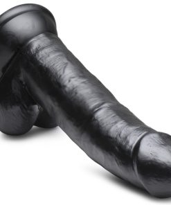 This mighty 8 inch cock has a lifelike look, from the realistic head, down the subtly curved shaft, to the round firm balls. Made from phthalate-and-latex free enhanced PVC. The material is firm with a slight amount of give, for a semi-pliable feel that makes it easy to slide into place. The strong suction cup base will adhere to any... Read more
