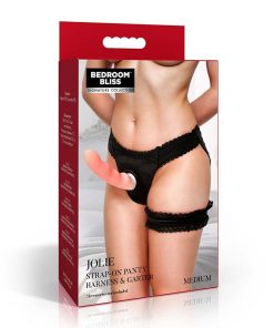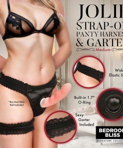 Indulge in comfort and style with the Jolie Strap-On Panty Harness and Garter. This panty harness features a wide elastic strap for ultimate support and security. Feminine details like lace-trimmed edges and a satin sheen give it an alluring appeal. Made from stretchy material, these panties fit your body perfectly and provide unmatched comfort. The universal O-ring is designed to fit most dongs, adding versatility to your intimate play. Easy to maintain, just machine wash on cold to keep them in pristine condition. Turn every moment into a seductive adventure with this elegant and practical harness.